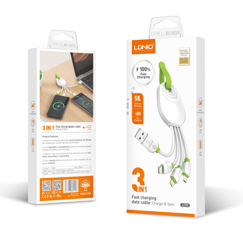 LDNIO 3 in 1 Fast Charching Management Cables LC95