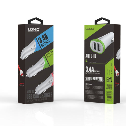 Ldnio 3.4A Auto-ID Dual USB Car Charger C332